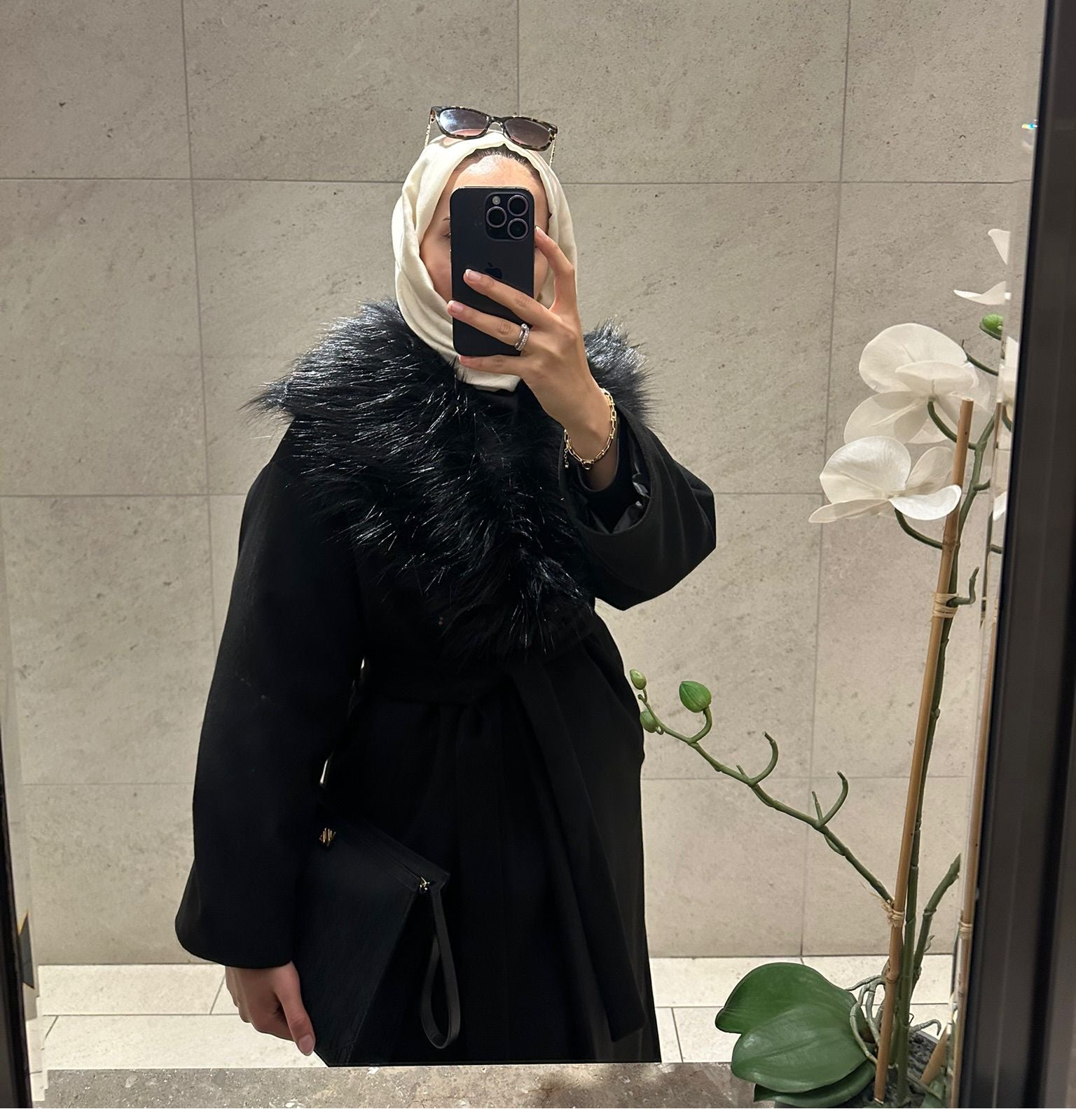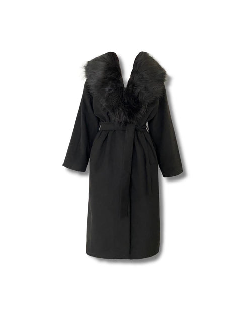 Perla Kürklü Kaban | Çıkarılabilir Kürklü Şal Yaka | Kuşaklı Uzun Kadın Kaban | Kışlık Şık Dış Giyim